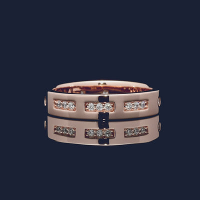 Cette bague est fabriquée avec l'alliage APM Rose et plaquée or 18k de 3 microns. Elle est sertie micro-pavé d'oxyde de zirconium.