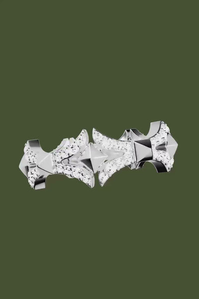 Chaque bijou est serti d'environ 300 pierres, le plus souvent des zircons, ou des perles d'eau douce. L'argent 925 millièmes que nous utilisons provient également en grande partie de sources recyclées.