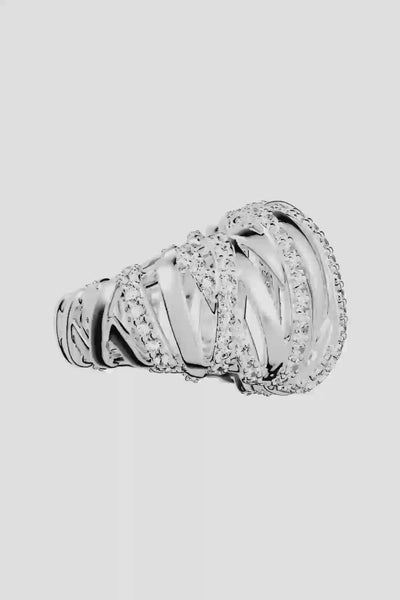 APM MONACO silver ring with interwoven design on a white background