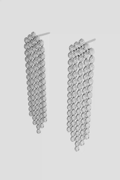 Ces boucles d'oreilles, méticuleusement serties de dizaines de pierres, s'inspirent des flocons de neige fraîchement tombés et leurs reflets de lumière.