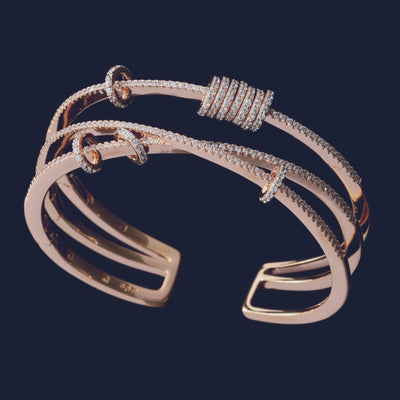 Ce bracelet est fabriqué avec l'alliage APM Rose et plaqué or 18k de 3 microns, il est serti micro-pavé d'oxyde de zirconium.