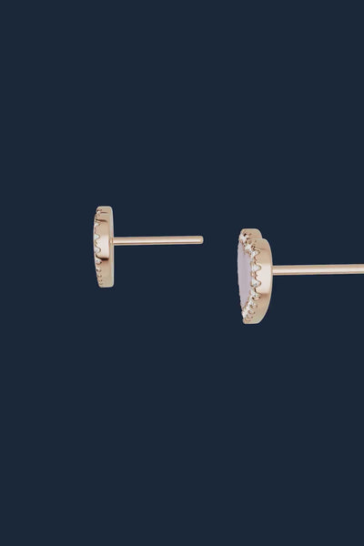 Ces boucles d'oreilles sont fabriquées avec l'alliage APM Rose et plaquées or 18k de 3 microns. Elles sont serties micro-pavé d'oxyde de zirconium et ornées de nacre rose.